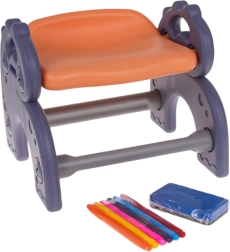 - sada s tabuľou, podložkou a stoličkou, .- hubka s gumou, .- 6 farebných fixiek, .- ozdobné samolepky, .- návod. . |