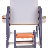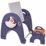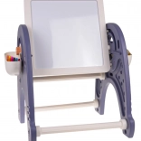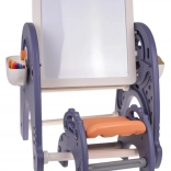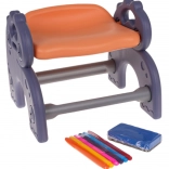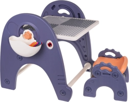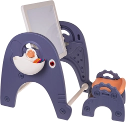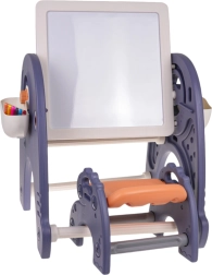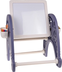 Sada 4 v 1, tabuľa, stôl, podložka na skladanie blokov a stolička pre deti od 3 rokov. Sada je vyrobená z najkvalitnejšieho plastu, nemá ostré hrany a je stabilná. Na plastových nohách je umiestnená tabuľa, ktorú možno nakláňať do ľubovoľného uhla a otáčať. Na jednej strane je doska na kreslenie a na druhej strane podložka na skladanie kociek. Dosku a podložku možno používať vo zvislej alebo vodorovnej polohe. Vo vodorovnej polohe možno sadu používať ako stolík na kreslenie, učenie alebo jedenie, prípadne ako podložku na bloky. Súčasťou sady je hubka a 6 fixiek. Po stranách sady sú aj dva košíky na maliarske potreby. Sada rozvíja detskú predstavivosť a poznávacie schopnosti. .. Funkcie stavebnice: . - určené pre deti od 3 rokov, .- vyrobené z bezpečných materiálov, bez ostrých hrán, .- mnoho možností na hru: .* maliarsky stolík, .* stôl na učenie alebo hranie, .* stojan na skladanie kociek, .* maliarska doska, .- stabilná stolička, .- rozvíja detskú predstavivosť a poznávacie schopnosti. . |