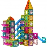 Táto rozsiahla stavebnica kombinuje magnetické dlaždice a prvky pre guľôčkové dráhy, takže deti od 3 rokov môžu stavať veže, hrady aj originálne trate pre farebné guľôčky. Diely sú vyrobené z kvalitného, hladkého plastu v živých farbách, magnetické hrany sa ľahko a pevne spoja a konštrukcie tak dobre držia aj pri vyšších stavbách.