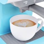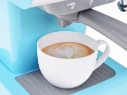 V hornej časti je uzatvárateľná nádržka na vodu, priložená vyberateľná páka sa ľahko zasúva do kávovaru a správne natočenie spustí „napúšťanie“ šálky. Pohyblivá parná tryska umožní „speniť“ mlieko pre latte alebo cappuccino, takže hra na kaviareň získa úplne nový rozmer.