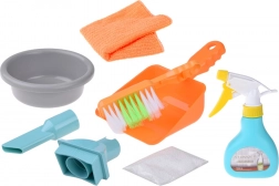 Metlička, lopatka, rozprašovač, handrička, miska aj vrecko s guličkami – všetko, čo malý pomocník potrebuje pre pestrú hru na upratovanie.