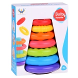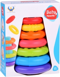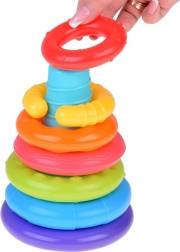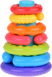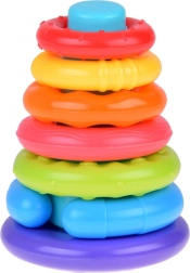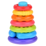 Farebná senzorická pyramída so šiestimi krúžkami je ideálna pre deti od 6 mesiacov. Podporuje rozvoj jemnej motoriky, koordináciu ruka–oko a zmyslové vnímanie vďaka rôznym textúram a farbám. Mäkké plastové krúžky sa ľahko uchopujú a skladajú, čo zábavnou formou rozvíja zručnosti a zvedavosť dieťaťa.