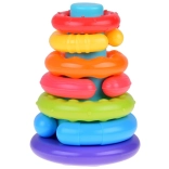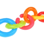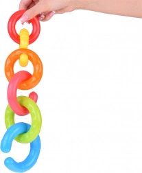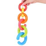 Krúžky sú vyrobené z mäkkého plastu, ktorý je príjemný na dotyk a bezpečný pre malé ručičky. Rôznorodé textúry poskytujú zmyslové podnety a motivujú k objavovaniu.
