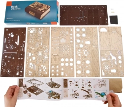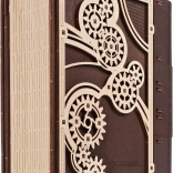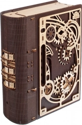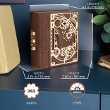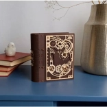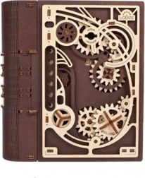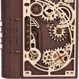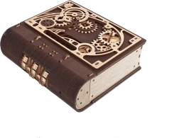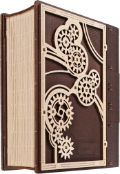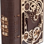 Kniha tajomstiev UGEARS je chytré spojenie dizajnovej dekorácie a praktického úkrytu. Vďaka sofistikovanému mechanizmu s ozubenými kolesami a číselníkom na chrbte sa otvára trojmiestnym kódom, prípadne špeciálnym postupom aj bez znalosti kombinácie. Laserom vyrezávané diely v kombinácii svetlého a tmavého dreva dodávajú modelu výrazný steampunkový charakter.