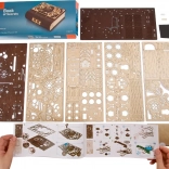 Laserom vyrezané diely z udržateľného dreva do seba presne zapadajú. Stavba je čistá, intuitívna a vedená podrobným obrázkovým návodom.