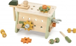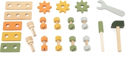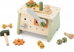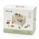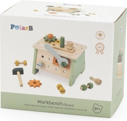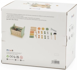 Drevený set Viga PolarB mini dielňa 2v1 poteší každého malého domáceho majstra. Obsahuje 21 dielov vrátane kladivka, kľúča, skrutkovača, skrutiek a matíc, kolíkov a ozubených koliesok. Stolík možno prevrátiť a premeniť na praktickú prepravnú a úložnú debničku. Hra prirodzene rozvíja jemnú motoriku, kreativitu a predstavivosť.