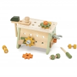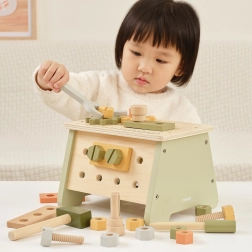 Objavte šikovnú hračku, ktorá spája mini dielňu a debničku na náradie 2v1. Deti sa zoznámia s nástrojmi a precvičia si skrutkovanie, údery kladivkom a presné spájanie. Po otočení stolíka vznikne kompaktný box na ľahké ukladanie a prenášanie všetkých dielov.