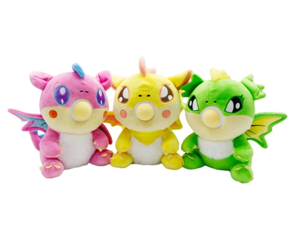 Kolekcia Popiki Dragons zahŕňa tri unikátne plyšové draky v rôznych farbách: žlté, ružové a zelené. Každý drak má svoje jedinečné vlastnosti a osobnosť, ktoré robia hru ešte zábavnejšou. Prostredníctvom stlačenia na správnom mieste drak vydáva zábavný "pop" zvuk a vystreľuje loptu, rozvíjajúc tak detskú predstavivosť a koordináciu.