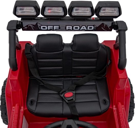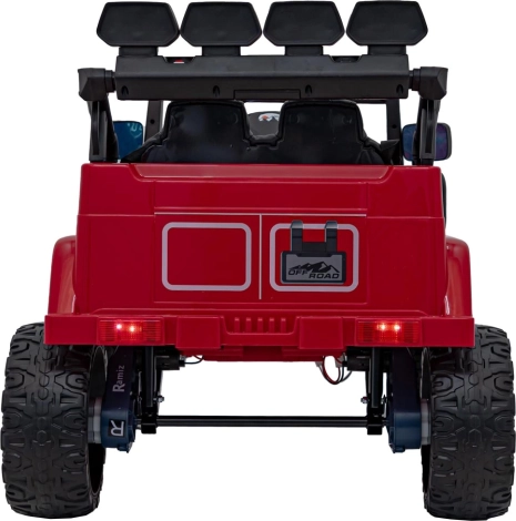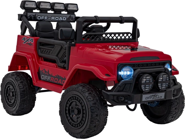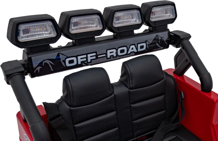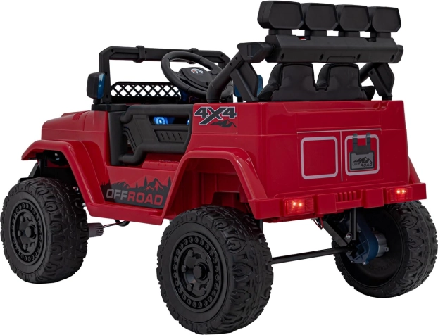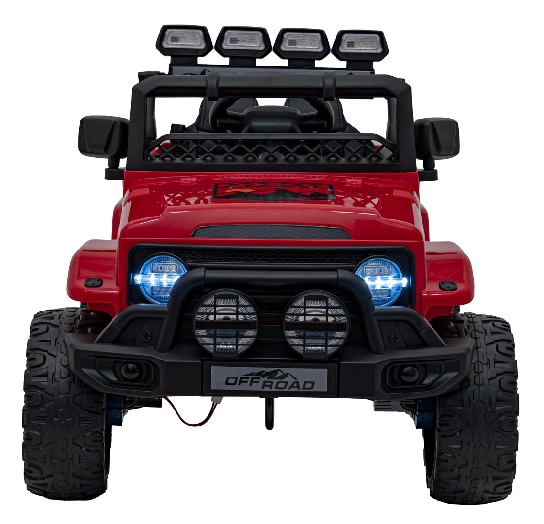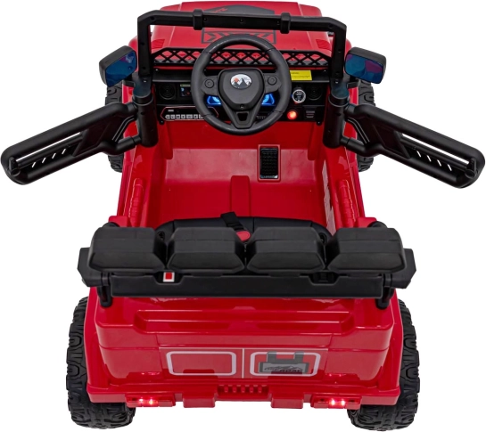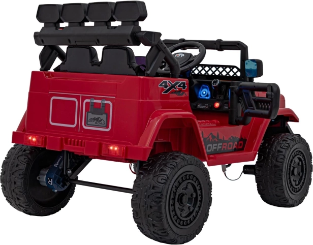 Rodičia ocenia diaľkové ovládanie 2.4G s 3 rýchlosťami a núdzovým tlačidlom Stop. Deti si užijú bohaté LED osvetlenie a multimédiá: USB, MP3, Bluetooth, AUX aj vstavané melódie. Prehľad o stave batérie zabezpečí indikátor nabitia.