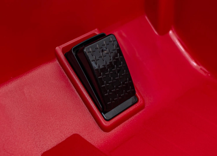 Plynulý rozjazd, 2.4G diaľkové ovládanie s 3 rýchlosťami a bezpečnostným tlačidlom Stop dávajú rodičom plnú kontrolu.