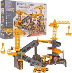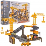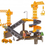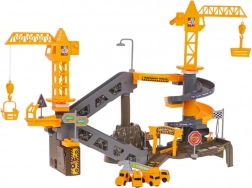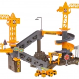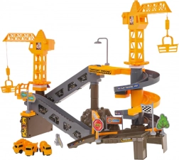 Postavte si vlastné rušné stavenisko s dvoma funkčnými žeriavmi, točňami a výťahom pre autíčka. Pohybové koľaje dopravia vozidlá nahor, z ramp schádzajú späť dolu – ideálna kombinácia akcie a nápaditej hry. Diely sú vyrobené z odolného plastu a vďaka výrazným farbám zaujmú na prvý pohľad.