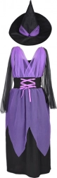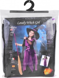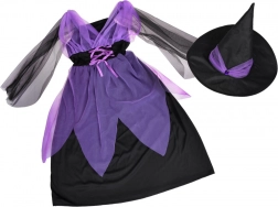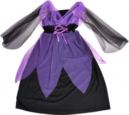 Očarujúci detský kostým čarodejnice na Halloween, karneval aj narodeninové oslavy. Súčasťou sú fialovo-čierne šaty a špicatý klobúk. Vďaka elastickému materiálu je kostým pohodlný, vyniká efektným tylom a šnurovaním. Ideálny na prevleky, školské vystúpenia aj kreatívne hranie. Pohodlné nosenie, čarovný vzhľad a ľahké obliekanie potešia každú malú čarodejnicu.