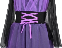 Premeníte svoju malú parádnicu na tajomnú čarodejnicu. Šaty v kombinácii čiernej a fialovej farby so vzdušnou vrstvou tylu a dekoratívnym šnurovaním na živôtiku vytvárajú výrazný, no stále pohodlný kostým. Ľahký textil sa príjemne nosí a neobmedzuje v pohybe, takže je skvelý na celovečernú zábavu.