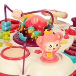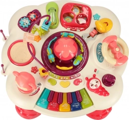 Objavte hravé učenie s týmto interaktívnym stolíkom pre deti v jemnej ružovej farbe. Ponúka klavírik so zvukmi a príbehmi v angličtine, bubny s paličkami, kolotoč, volant s klaksónom aj tvarový triedič. Podporuje jemnú motoriku, koordináciu oko–ruka a zmyslový rozvoj a zabaví na dlhé hodiny.