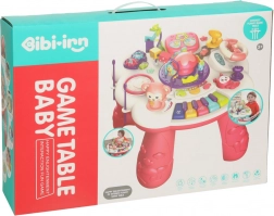 Interaktívny vzdelávací stolík Bibi-inn je malé domáce centrum zábavy, ktoré spája hudobné, svetelné a mechanické podnety. Dieťa môže prehrávať krátke príbehy, pesničky a vtipné hlášky v angličtine, stláčať farebné klávesy, otáčať prvky a skúmať tvary. Rôznorodé aktivity prirodzene rozvíjajú kreativitu, sluch a fantáziu.