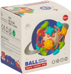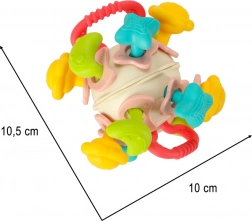 Silikónové časti slúžia ako bezpečné hryzátko, ktoré uľaví citlivým ďasnám. Guľôčka motivuje deti k uchopovaniu, otáčaniu a prekladaniu z ruky do ruky, čím prispieva k rozvoju jemnej motoriky a koordinácie oko–ruka.