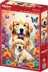 Puzzle „Materinská láska – Psy“ od spoločnosti Alipson je nádherná skladačka s 1000 dielikmi, zobrazujúca dojímavý moment medzi psou matkou a jej šteniatkom. Obklopení pestrými kvetmi a motýľmi vytvárajú obraz plný lásky a harmónie.