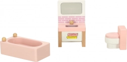 Vaňa, umývadlo, toaleta a kuchynský set s drezom, sporákom, chladničkou, stolom a stoličkami. Deti si precvičia každodenné rutiny formou hry.