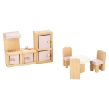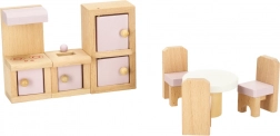 Premeňte domček pre bábiky na útulný domov. Táto bohatá sada nábytku z prírodného dreva ponúka všetko pre kompletné zariadenie štyroch miestností: obývacej izby, spálne, kúpeľne a kuchyne. Odolné prevedenie a jemné pastelové farby vykúzlia harmonické prostredie pre každodenné hranie.