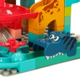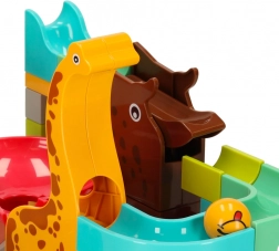 Žirafa, krokodíl a ďalšie motívy nie sú len dekorácia – tvoria aktívne časti trasy, ktoré robia jazdu guľôčok ešte napínavejšou.
