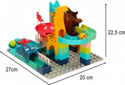 Postavte si s deťmi vlastnú guľôčkovú dráhu a sledujte, ako sa guľôčky rútia po rampách, toboganoch a špirálach. Zvieratká nie sú len ozdobou – tvoria súčasť trasy, takže je hra ešte zábavnejšia a pútavejšia. Sada je skvelá na rozvoj logického myslenia a radosť z dokončenej stavby.