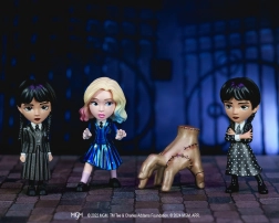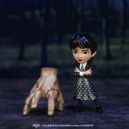 Trvalé a estetické: Figúrky sú vyrobené na 100% z tlakovo odlievaného kovu a zastupujú postavy ako Ruka Thing, Wednesday v bodkovaných šatách, Wednesday v uniforme a jej priateľka Enid Sinclair.