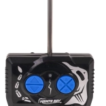 Ovládajte svoju rybu jednoducho a intuitívne pomocou čierneho a modrého ovládača s anténou a dvomi jasne modrými ovládacími gombíkmi.