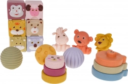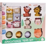- 6 kociek so zvieratkami: opica, ovca, tiger, medveď, jeleň, koala, každá s inou textúrou a farbou.