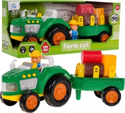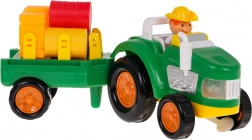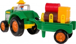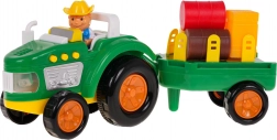 Prebuďte detskú predstavivosť s farebným, interaktívnym traktorom s odpojitelnou prívesnou. Tento traktor je vybavený zvukovými efektmi, ako sú zvuky štartovania, práce stroja a trúbenia klaksónu, rovnako ako svetelnými efektmi v podobe blikajúcich predných svetiel. Sada obsahuje figúrku farmára a rôzne balíky a kocky slamy pre ešte lepšiu farmársku atmosféru.