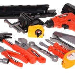 - Set zahŕňa kľúče, kombinačky, kladivo, skrutkovače a ďalšie nástroje