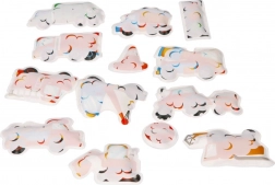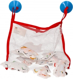Samolepky sú mäkké, príjemné do ruky a priľnú na hladké mokré povrchy (vanicka, kachličky). Po kúpaní ich jednoducho uložíte do vetrateľnej sieťky s rozmerom 23 × 27 cm, ktorá podporuje odtok vody a hygienické sušenie.
