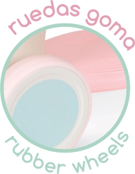 Pogumované kolesá zabezpečujú tichý chod a istý kontakt s povrchom. Stabilná štvorkolesová konštrukcia podporuje rovnováhu začínajúcich jazdcov.