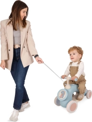 Premyslené detaily zvyšujú pohodlie aj bezpečnosť: otočné riadidlá s ochranou proti pricviknutiu prstíkov, mäkké pogumované gripy a tiché kolesá pre hladkú jazdu. Podnožka uľaví unaveným nožičkám a ťažný popruh (100 cm) umožní rodičom dieťa pohodlne viesť. Nízka hmotnosť uľahčuje prenášanie aj skladovanie.
