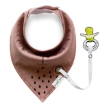 Praktický a štýlový slintáčik pre bábätká v univerzálnej hnedej farbe s ľahkým zapínaním na patentky a odnímateľným klipom na cumlík. Pohodlný doplnok, ktorý chráni krk pred chladom a zároveň poslúži ako teething bib na obdobie prerezávania zúbkov.