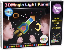 Objavte kreatívnu zábavu s magickou svetelnou 3D tabuľou a sadou 276 farebných kolíkov. Vytvárajte svietiace obrázky a 3D vzory, rozvíjajte jemnú motoriku, priestorovú predstavivosť a kreativitu. Vhodné pre deti od 4 rokov, so šablónami pre ľahký štart.