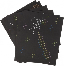 Svetelný panel s mriežkou otvorov umožňuje ľahko zasúvať priesvitné kolíky a vytvárať žiarivé motívy. Vďaka priloženým šablónam sa môžete nechať viesť hotovými predlohami, alebo tvoriť úplne vlastné dizajny. Tabuľa je napájaná batériami 3× AA (nie sú súčasťou balenia).
