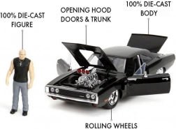 Užite si zberateľskú kvalitu a filmovú atmosféru s modelom 1970 Dodge Charger z kultovej série Rýchlo a zbesilo. Precízne kovové prevedenie, autentické detaily a otváracie dvere, kapota aj kufor potešia každého fanúšika muscle carov aj filmových replík.