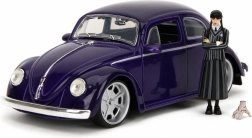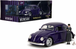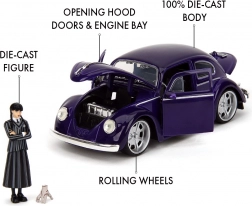 Oficiálne licencovaná zberateľská sada od Jada Toys prináša ikonický Volkswagen Beetle (1972) v mierke 1:24 a figúrku Wednesday Addams vrátane Ručky (Thing). Kovové prevedenie s otváracími dverami, kapotou a vekom motora, gumové kolesá a precízne detaily zaručujú skvelý zážitok z vystavenia aj hrania. Ideálne pre fanúšikov seriálu Wednesday a zberateľov od 8 rokov.