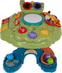 Tento interaktívny strom je ideálny pre deti od 18 mesiacov. Ponúka množstvo rôznych aktivít vrátane svietiaceho bubna, klavíra, ovocného sadu s jablkami a zábavných zvieratiek. Hračka povzbudzuje deti k učeniu farieb, melódií a základných anglických číslic, a to všetko prostredníctvom interaktívnej zábavy.
