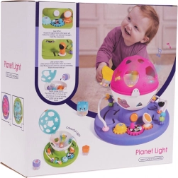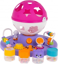Integrované svetlo a zvuk premenia hranie na zmyslový zážitok. Hviezdny projektor vykúzli jemné svetelné efekty a melódie motivujú k ďalšej aktivite. Každý zo 4 tvarových dielikov obsahuje guľôčky, ktoré príjemne hrkajú a podporujú zmyslové vnímanie.