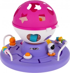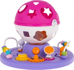 Tento farebný triediaci box s hornou guľovou časťou a tematickými prvkami vesmíru ponúka deťom množstvo spôsobov, ako skúmať a učiť sa. Základňa ukrýva ozubené kolieska na otáčanie, malé labyrinty a preklápače, zatiaľ čo guľatý triedič pomáha správne priraďovať tvary. Po vložení všetkých dielikov možno guľu otvoriť a začať znova – ideálne na opakovanú hru.