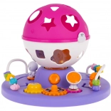 Gulovitý triediaci box s otvormi pre rôzne tvary učí deti správnemu priraďovaniu. Po vložení všetkých dielikov možno guľu otvoriť a začať odznova.