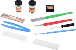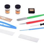 - Pripravené sklíčko, 2× sklíčko na preparát, 2× kelímok so zátkou, krabička na vzorky, pinzeta, špachtľa, skalpel, ihla, skrutkovač, návod