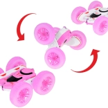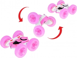Hľadáte odolné a efektné RC auto, ktoré pobaví deti aj dospelých? Tento kaskadérsky model zvládne plný obrat o 360° a vďaka obojstrannej konštrukcii pokračuje v jazde aj po prevrátení. Veľké, priľnavé kolesá a robustné spracovanie si poradia s nerovným povrchom, zatiaľ čo svietiace kolesá vykúzlia parádnu podívanú za šera aj v tme.
