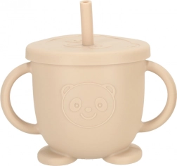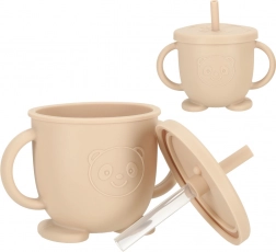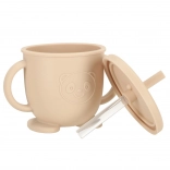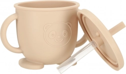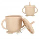 Silikónový hrnček so slamkou a dvoma úchytmi podporuje samostatné pitie a znižuje riziko rozliatia.