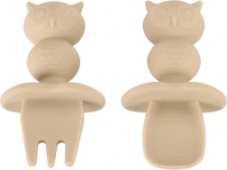 Tanier v tvare sovy s tromi priehradkami pomáha lákavo oddeliť jedlo. Mäkký potravinársky silikón je jemný k detským ďasnám, bezpečný a ľahko sa čistí. Ergonomické príbory (štandardné aj mini) padnú do detskej rúčky a podporujú rozvoj jemnej motoriky.