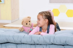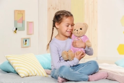 Pohyblivé končatiny a otočná hlavička uľahčujú obliekanie aj štýlové pózovanie. Medvedík sa tak stáva skvelým spoločníkom pre role-play – môže byť bábätko, kamarát, princezná aj odvážny cestovateľ. Súčasťou je aj knižka priateľstva so samolepkami, kam si deti môžu zapisovať spoločné zážitky.