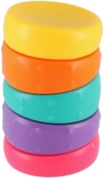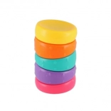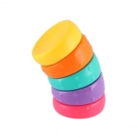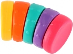 Predstavujeme dúhový antistresový krúžok – malú vežu s 5 zakrivenými farebnými kruhmi, ktoré do seba dokonale zapadajú. Každý kruh má rozmanité textúry a tvary, ktoré podporujú jemnú motoriku a kreativitu.