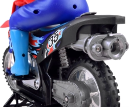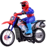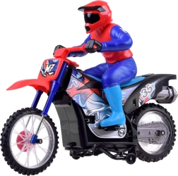 Zažite vzrušenie z extrémnych športov s touto terénnou motorkou typu CROSS na diaľkové ovládanie. Je vyrobená z kvalitných plastových materiálov, disponuje pružinovým odpružením na predných aj zadných kolesách a gumovými pneumatikami. Motorka je vo väčšine zostavená a pôsobí realisticky vďaka svojim funkciám a detailom.