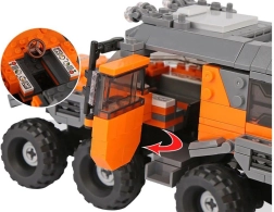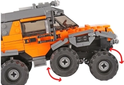 Táto skvelá stavebnica je určená na zostavenie terénneho vozidla. Kocky vám umožnia postaviť 8-kolesové vozidlo na špeciálne úlohy. Skvelé je, že po zostavení takéhoto vozidla má auto pohyblivé časti. Technické kocky v oranžovej a čiernej farbe boli vyrobené veľmi efektne.